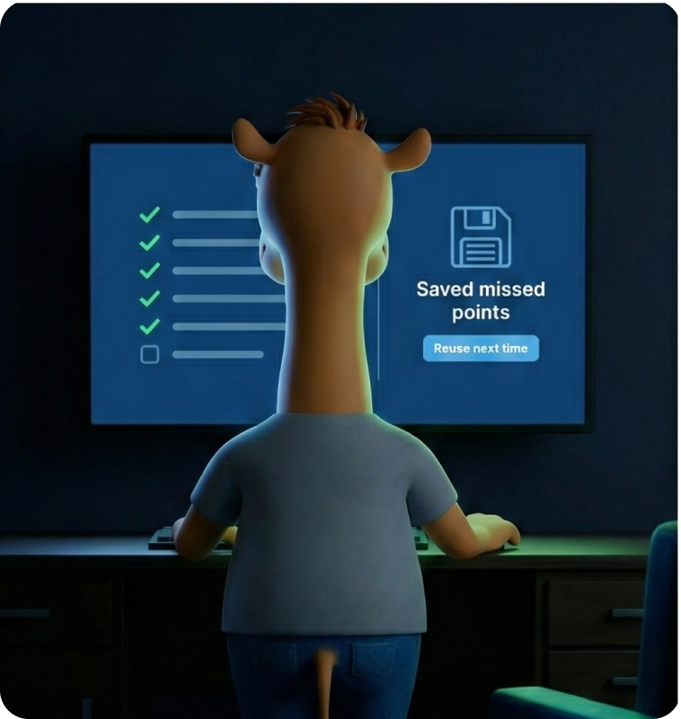 AI가 초안을 만들고, 내가 고쳐서 내 가설로 만듭니다. 나중에 리뷰로 점검하고, 놓친 포인트를 기록해요.
